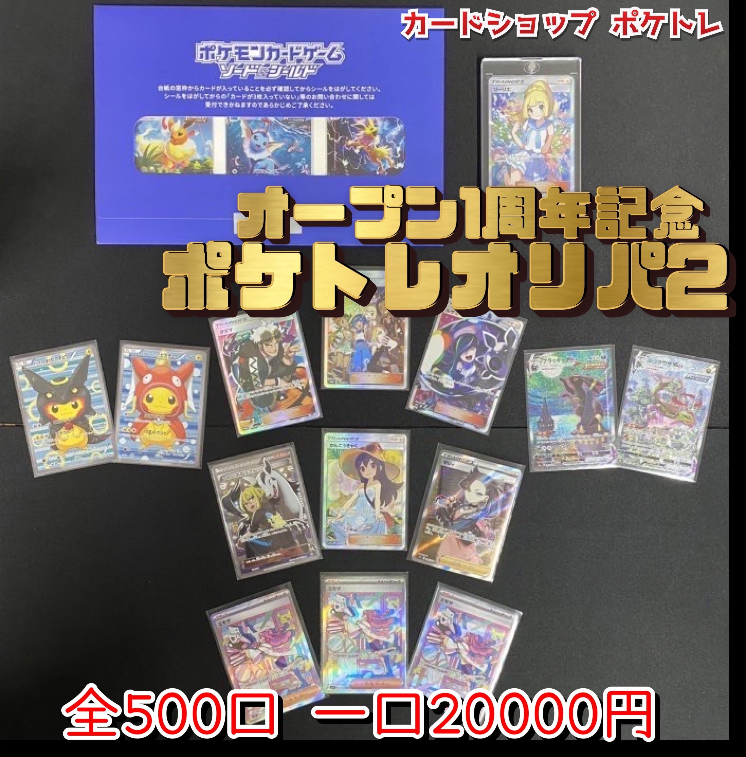 夏ポケカやリーリエなど、圧倒的な人気カードをラインナップして即完売を記録したオープン記念「ポケトレオリパ」が、1周年の感謝を込めた「第2弾」として登場します。